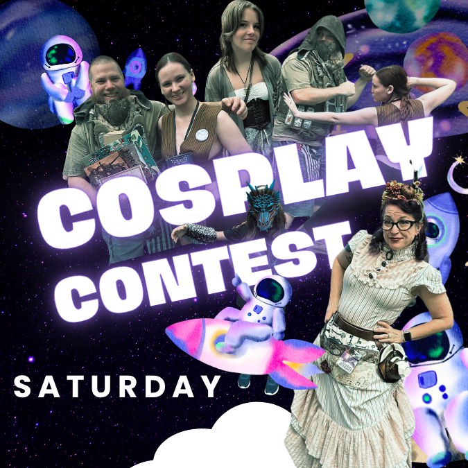 Walk into one of our special themed conference rooms where our host Jay Myers will transform your con experience into a spaceship adventure! Take on the jobs of Captain, Helm, Science, Communication, Engineering, and Weapon Control. Operate the ship together and defend the cosmos from evil aliens!